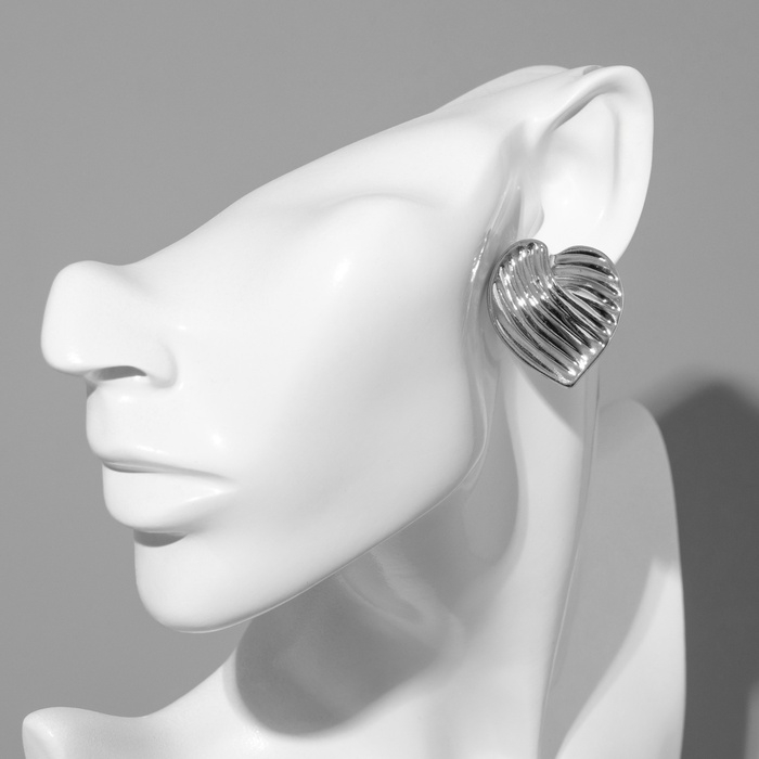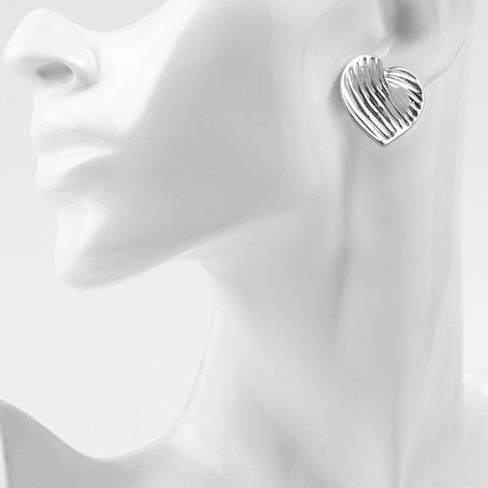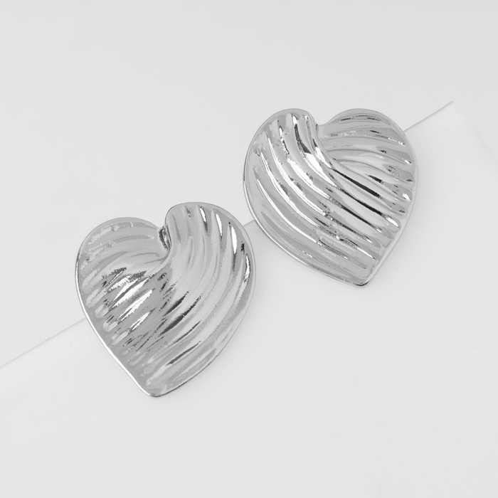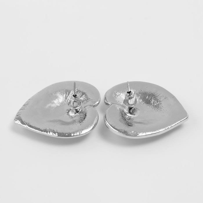 Серьги металл «Сердца» лист, цвет серебро