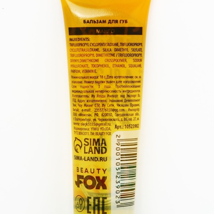 Бальзам-масло для губ с витамином Е, 18 мл, аромат манго, BEAUTY FOOD