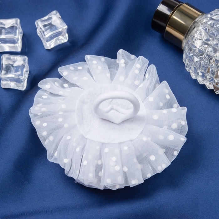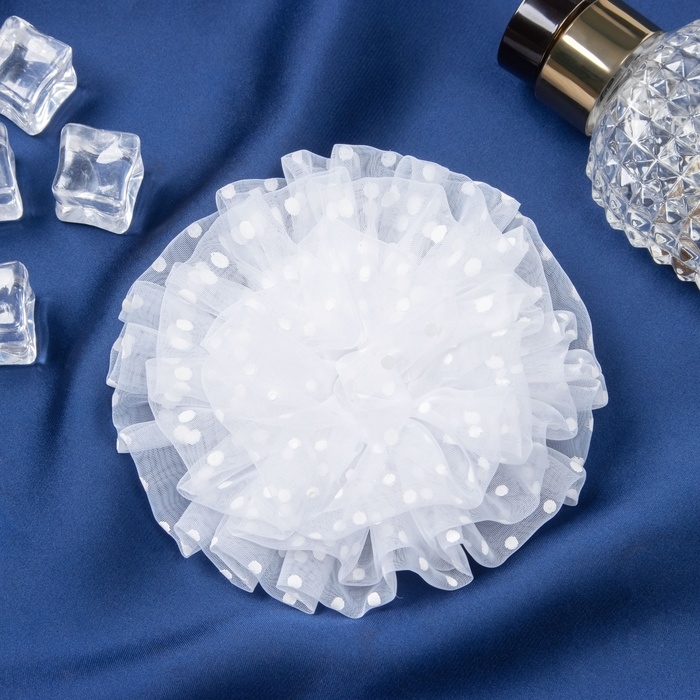 Резинка для волос бант "Школьница" классик горошек, d-10 см, белый