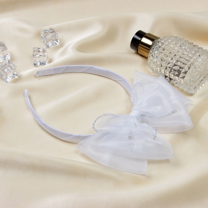 Ободок для волос "Школьница" тройной бант, 1 см, белый