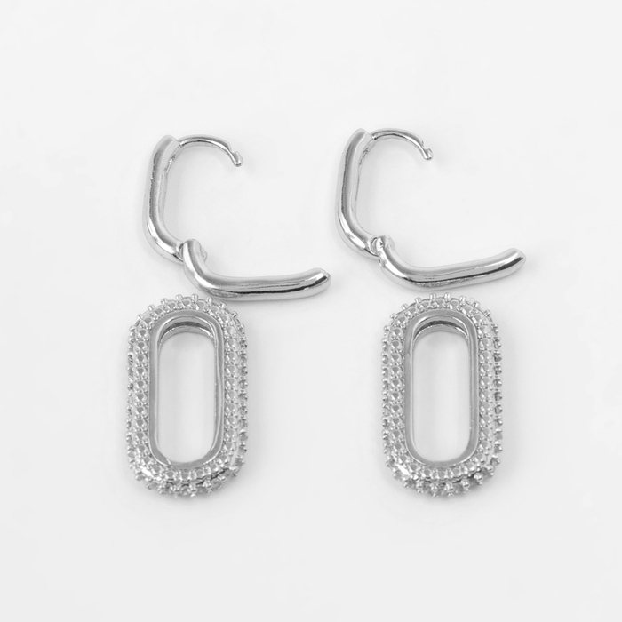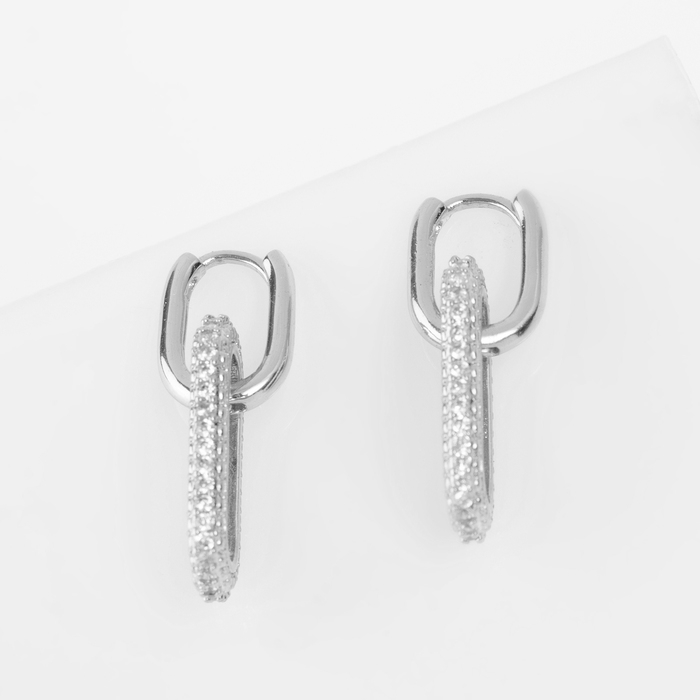 Серьги металл «Цепи» два звена, цвет белый в серебре