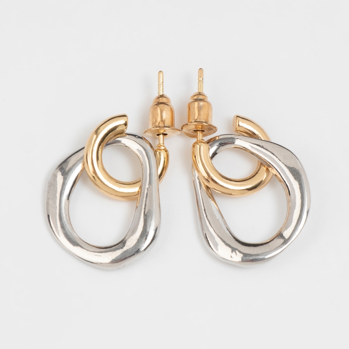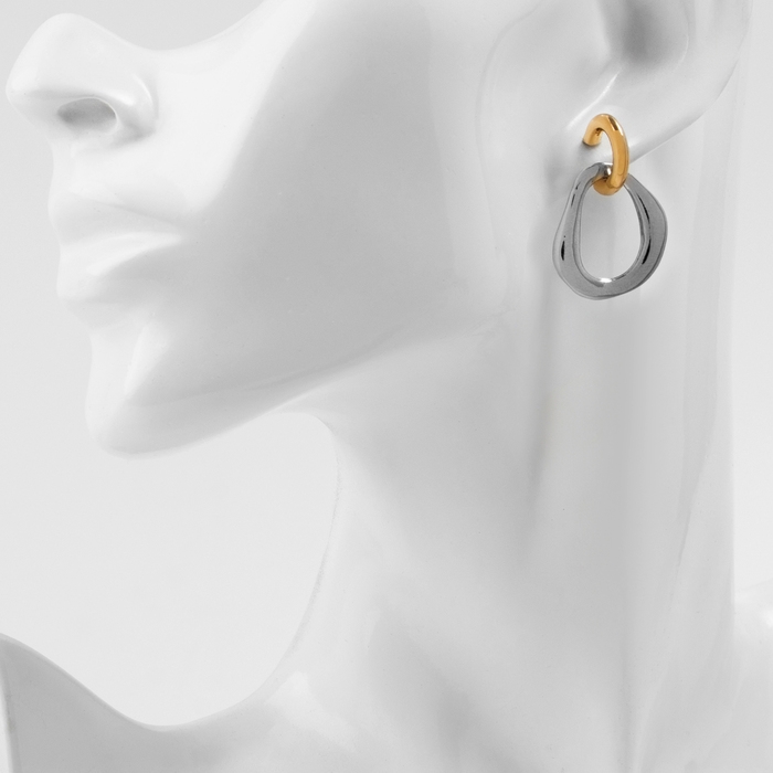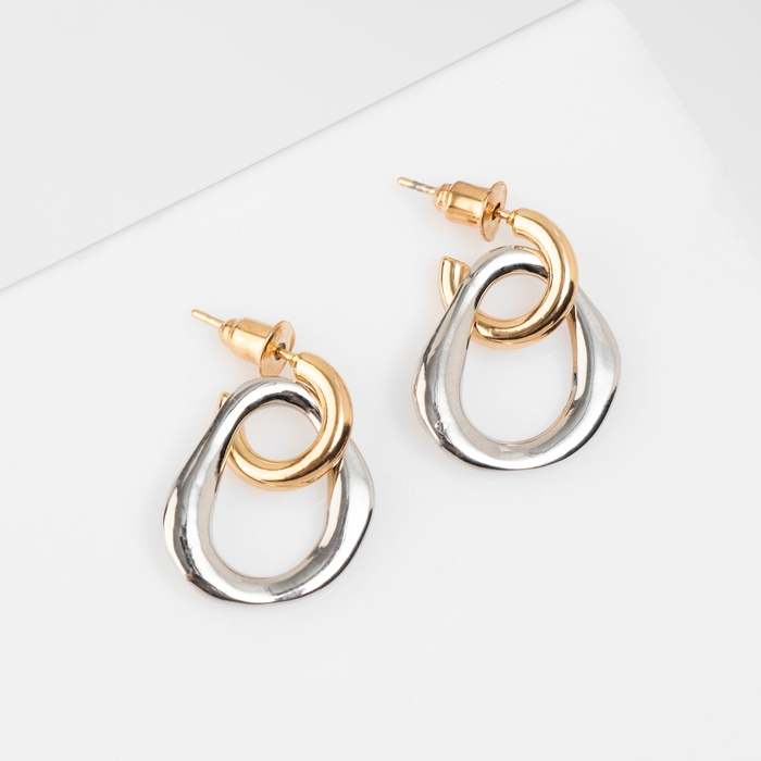 Серьги металл «Цепь» полукруг, звено, цвет золото с серебром