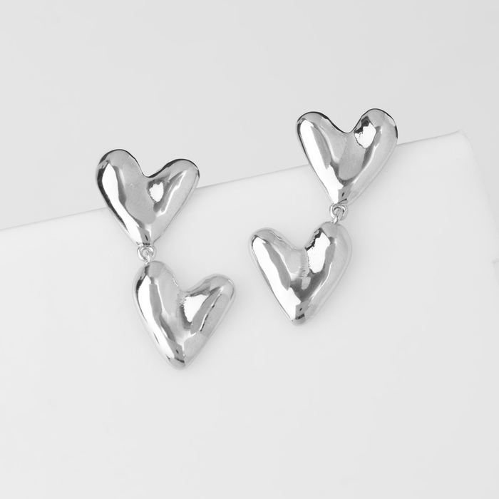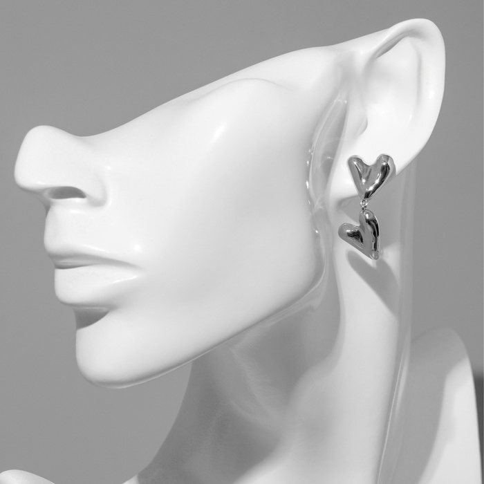 Серьги металл «Сердца» соединение, цвет серебро