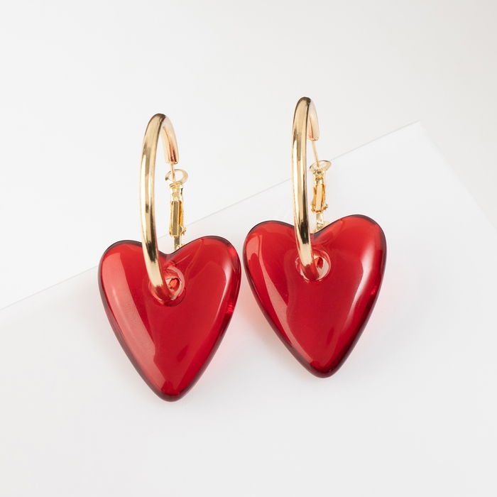 Серьги-кольца «Сердца» красный в золоте
