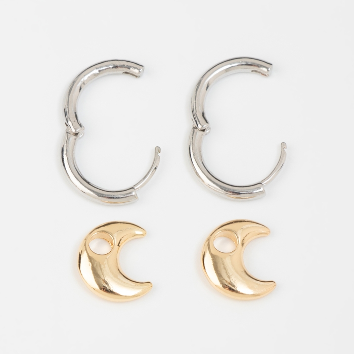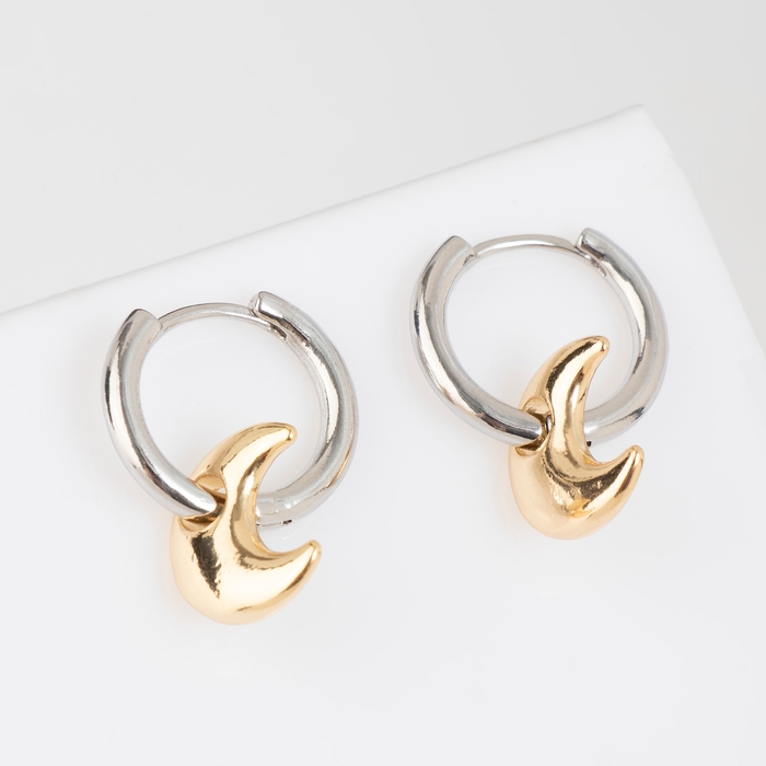 Серьги со съёмным элементом «Трансформер» луна, цвет серебро с золотом