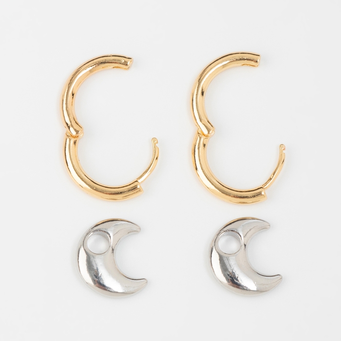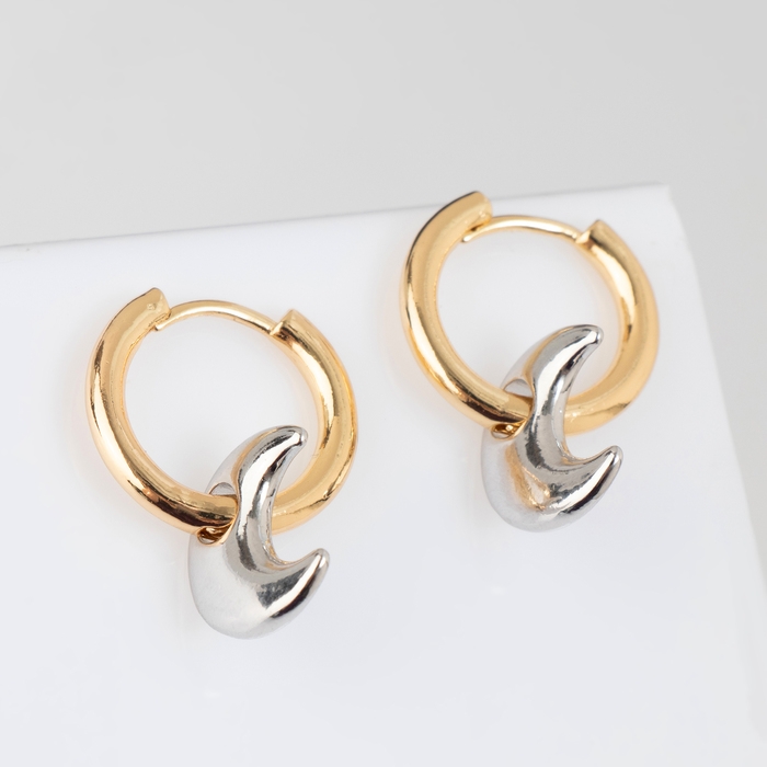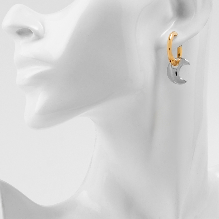 Серьги со съёмным элементом «Трансформер» луна, цвет золото с серебром