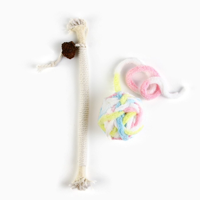 Игрушка для кошек. Набор игрушек мататаби и клубок, белый цвет