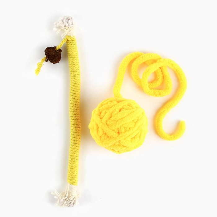 Игрушка для кошек. Набор игрушек мататаби и клубок, желтый цвет