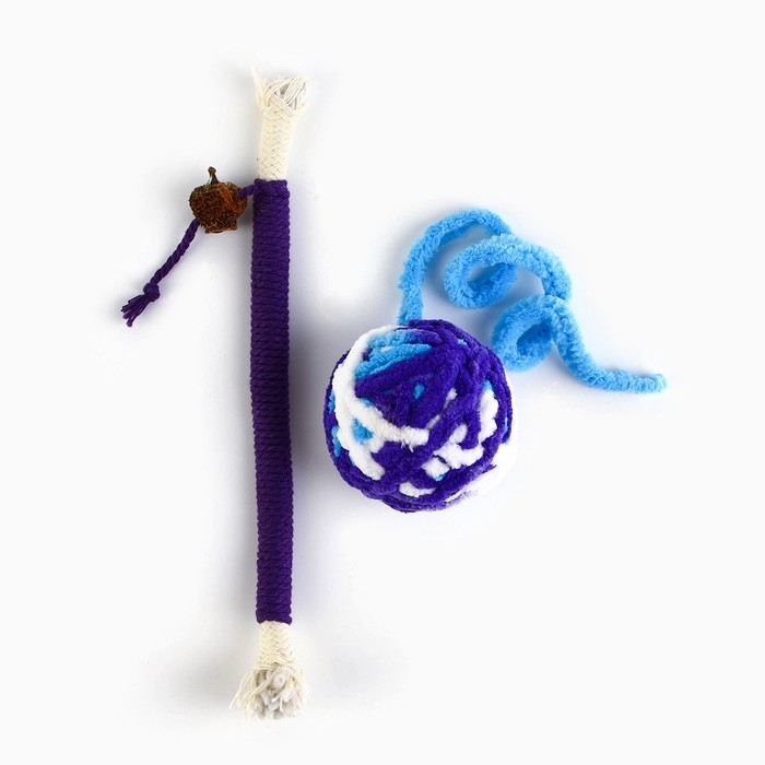 Игрушка для кошек. Набор игрушек мататаби и клубок, фиолетовый цвет