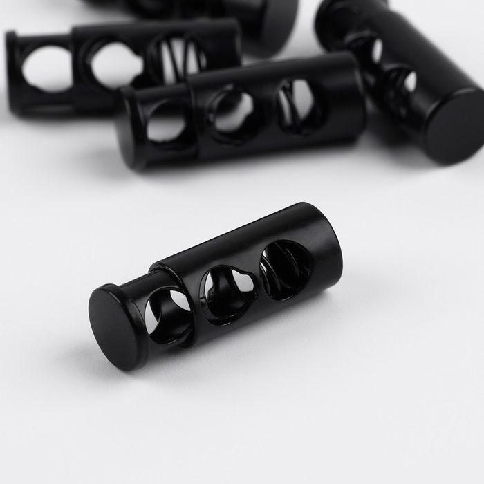 Фиксатор для шнура, двойной, d = 5 мм, 9 × 25 мм, 5 шт, цвет чёрный