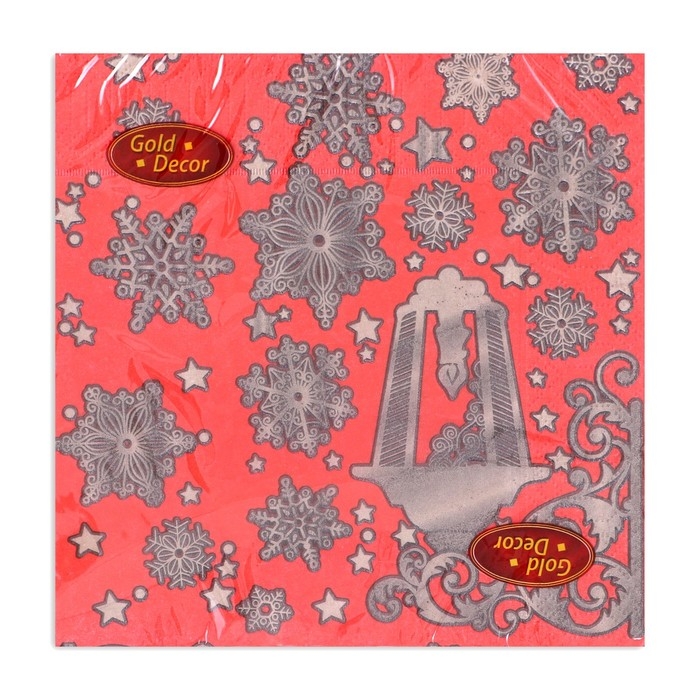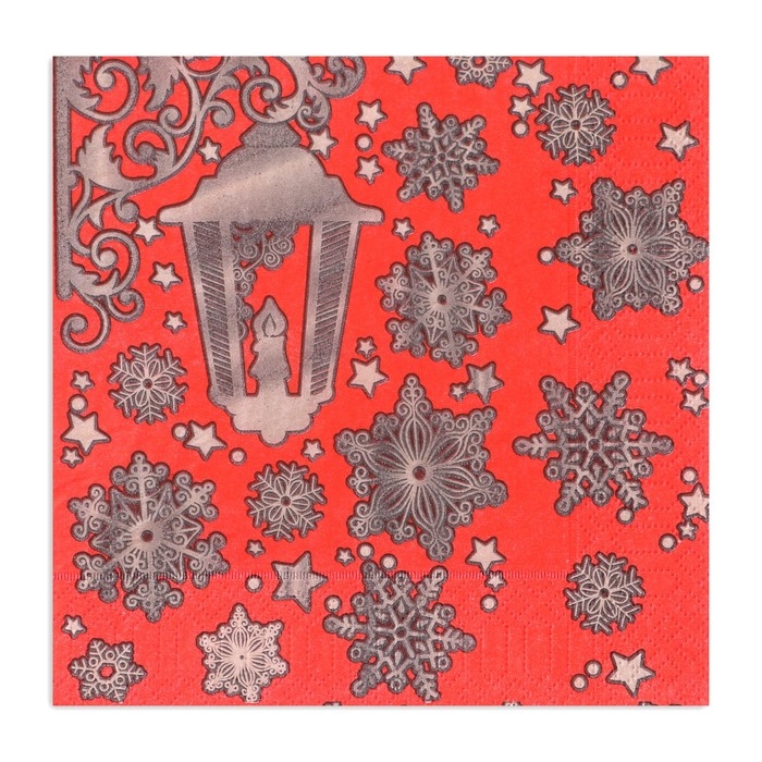 Новогодние салфетки бумажные Gold Décor «Новогдний фонарь на красном» 3 слоя, 33х33 см, 20 шт