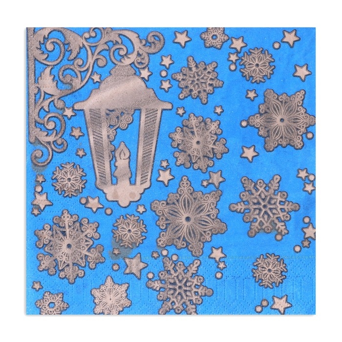 Новогодние салфетки бумажные Gold Décor «Новогодний фонарь на синем» 3 слоя, 33х33 см, 20 шт