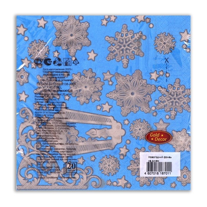 Новогодние сервировочные бумажные салфетки - это отличное украшение для вашего праздничного новогоднего стола. Идеально подойдут как для сервировки, так и в качестве декора и украшения как в домашних условиях, так и на больших праздничных мероприятиях. Салфетки с уникальным рисунком будут хорошим подарком для родных и близких. Данные салфетки можно использовать так же для декупажа и коллажей.