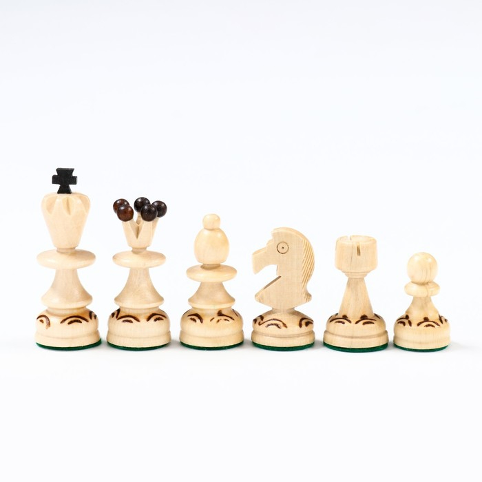 Миниатюрная модель шахмат - идеальный дорожный вариант для тех, кто даже в дороге, в путешествии хочет иметь возможность сыграть в любимую настольную игру. Несмотря на маленький размер, эта модель шахмат восхищает своими деталями. Так, к примеру, каждая фигура украшена небольшим орнаментом, выполненным методом выжигания. Доска имеет простой, лаконичный стиль с прямыми и четкими формами и линиями. Каждая из фигур имеет на дне подложку изумрудного цвета, которая, во-первых, предотвращает скольжение по доске, во-вторых - ее царапание.