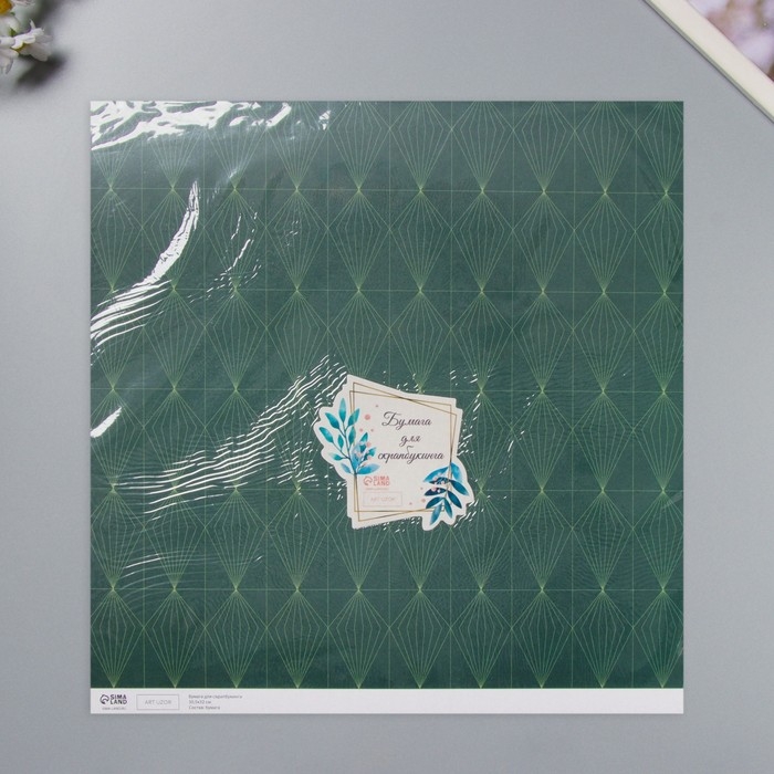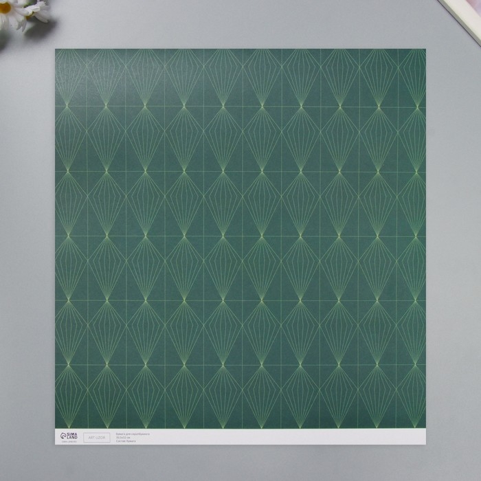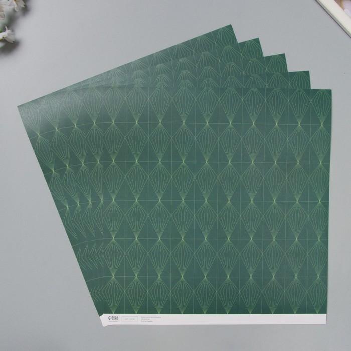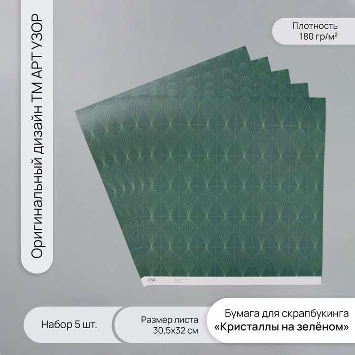 Бумага для скрапбукинга "Кристаллы на зелёном" плотность 180 гр набор 5 шт 30,5х32 см