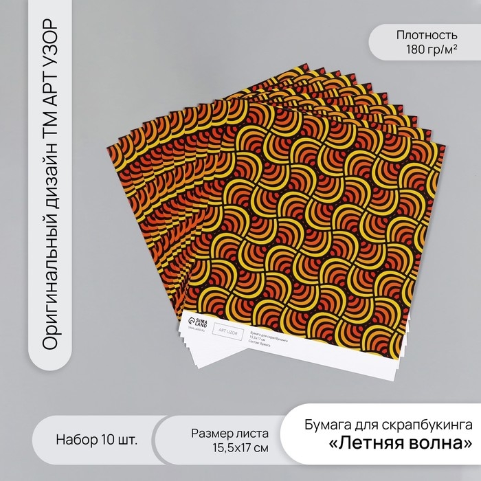 Бумага для скрапбукинга "Летняя волна" плотность 180 гр набор 10 шт 15,5х17 см
