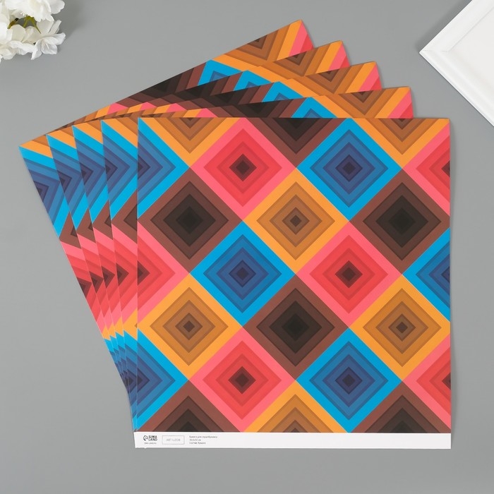 Бумага для скрапбукинга "Ромбы" плотность 180 гр набор 5 шт 30,5х32 см