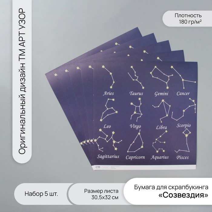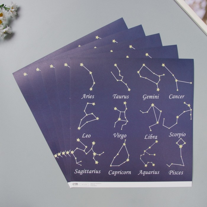 Бумага для скрапбукинга "Созвездия" плотность 180 гр набор 5 шт 30,5х32 см