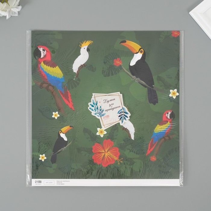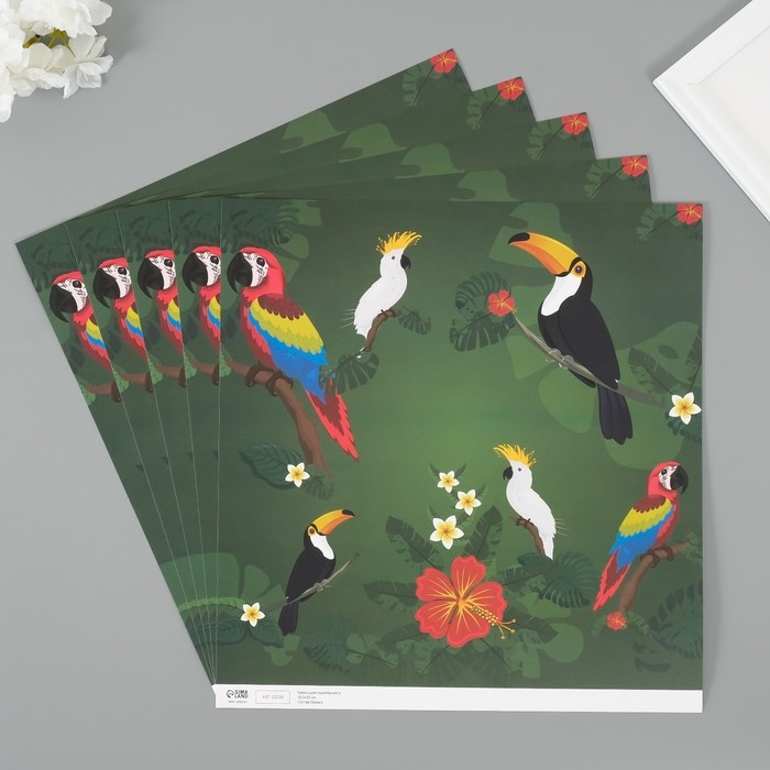 Бумага для скрапбукинга "Экзотические птицы" плотность 180 гр набор 5 шт 30,5х32 см