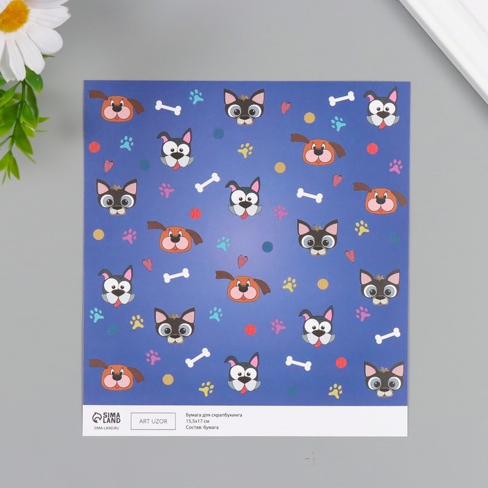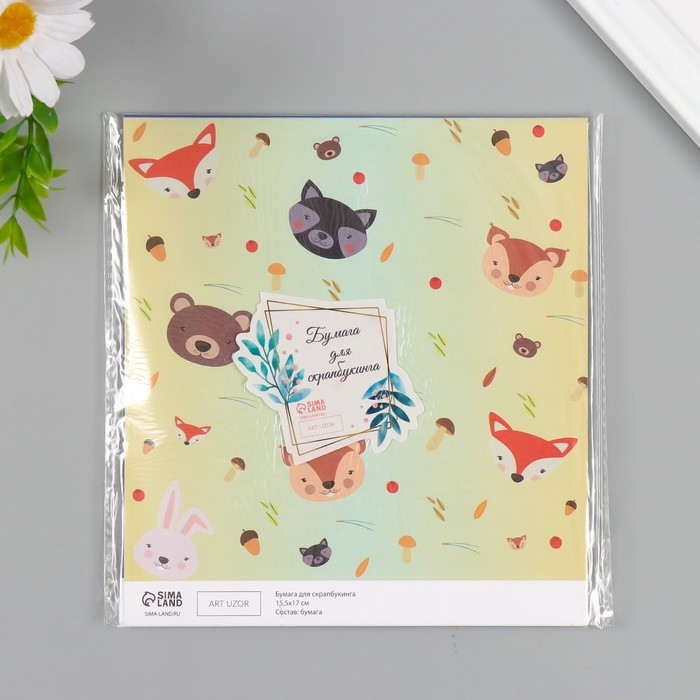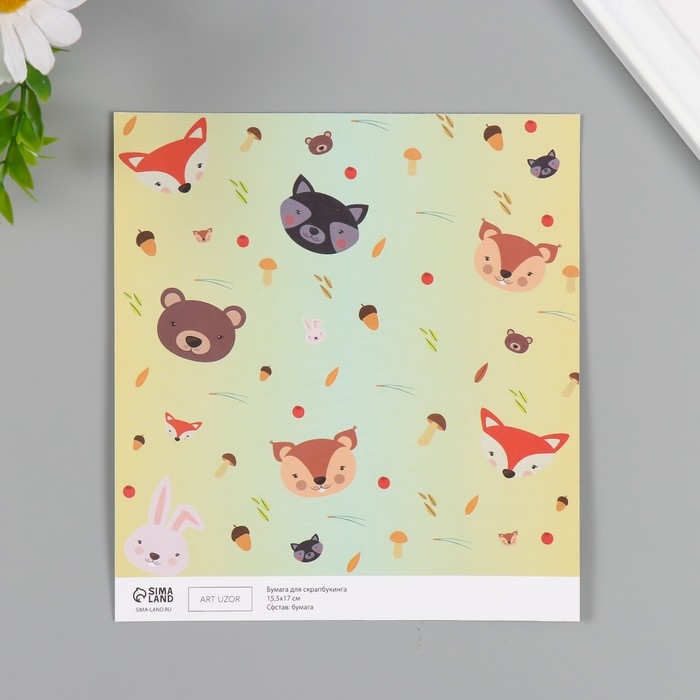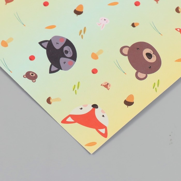 Бумага для скрапбукинга двусторонняя "Лесные звери и пёсики" плотность 180 гр набор 10 шт 15,5х17 см