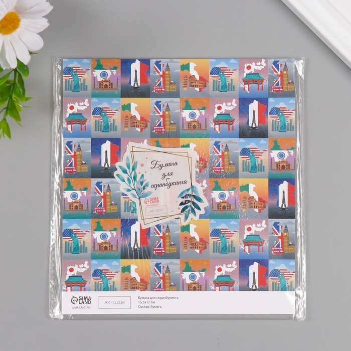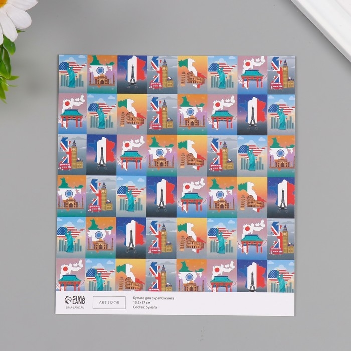 Бумага для скрапбукинга двусторонняя "Путешествия" плотность 180 гр набор 10 шт 15,5х17 см 1071838