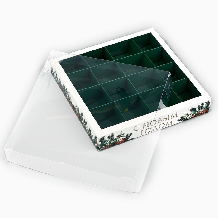 Коробка под 16 конфет с ячейками «Новогодняя ботаника», 19 х 19 х 3 см, Новый год
