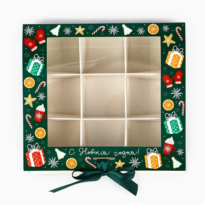 Коробка под 9 конфет с ячейками «С Новым годом!» 14.8 х 13.5 х 3.5 см, Новый год