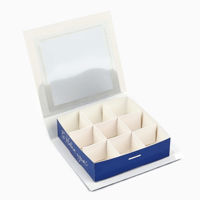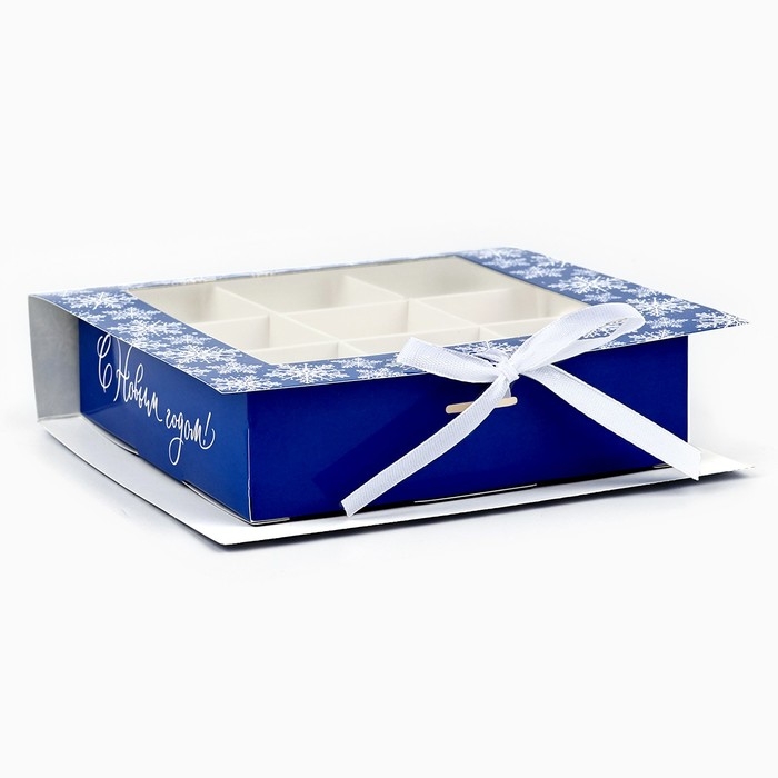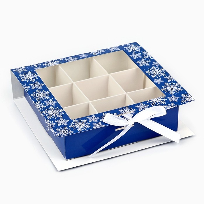 Коробка под 9 конфет с ячейками «Снежинки» 14.8 х 13.5 х 3.5 см, Новый год