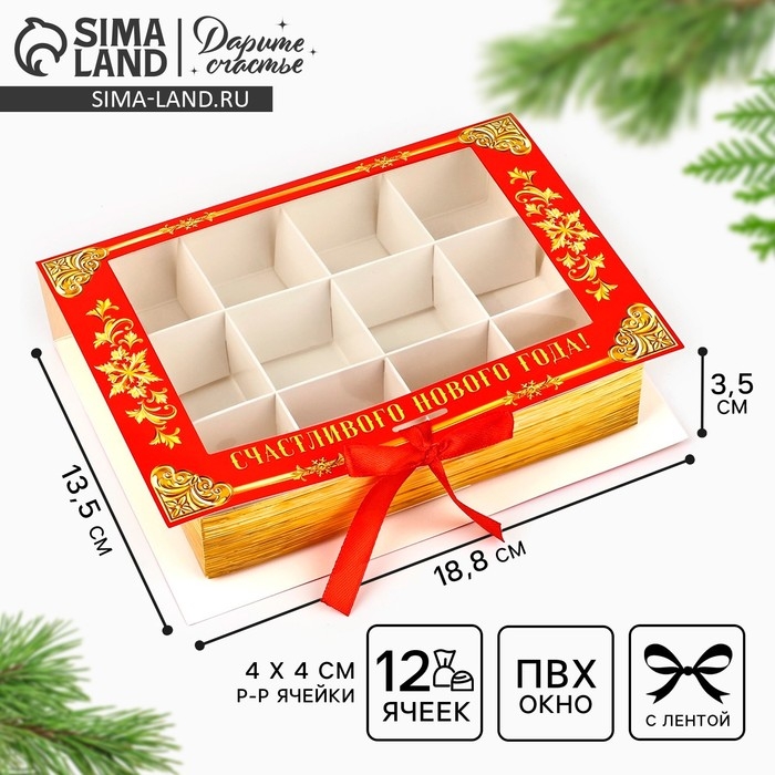 Коробка под 12 конфет с ячейками «Дедушка Мороз» 18.8 х 13.5 х 3.5 см, Новый год