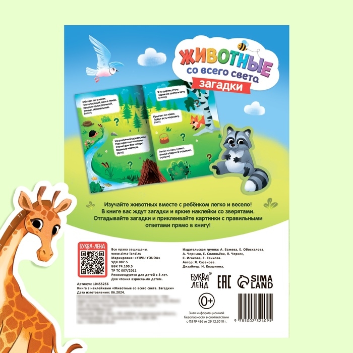 Книга с наклейками «Животные со всего света. Загадки», 30 наклеек, 3+