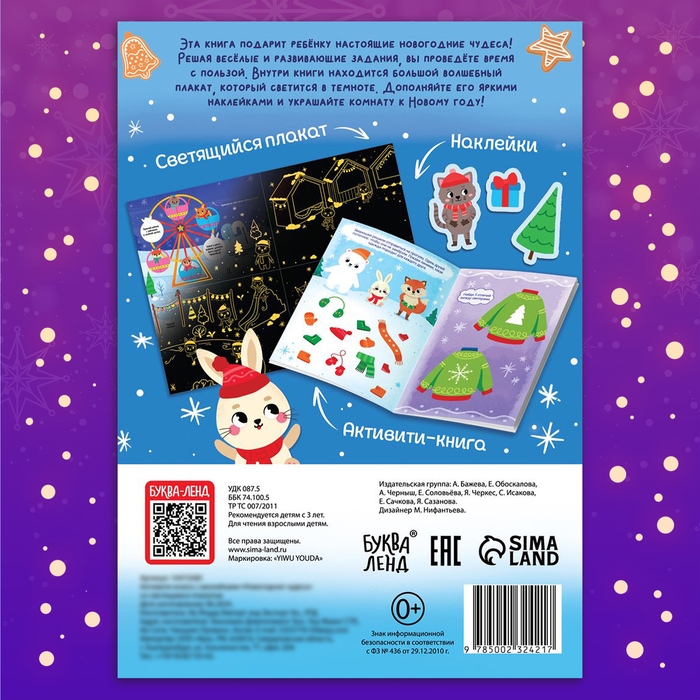 Активити-книга с наклейками «Новогодние чудеса», со светящимся плакатом