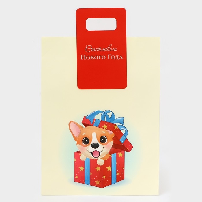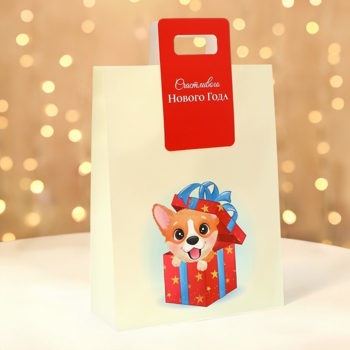 Пакет подарочный с вырубной ручкой "Корги" - это яркий и оригинальный способ упаковки подарков на Новый год. Он выполнен из плотной бумаги с изображением милого корги в новогоднем стиле, что делает его идеальным выбором для любителей собак и новогодней тематики.