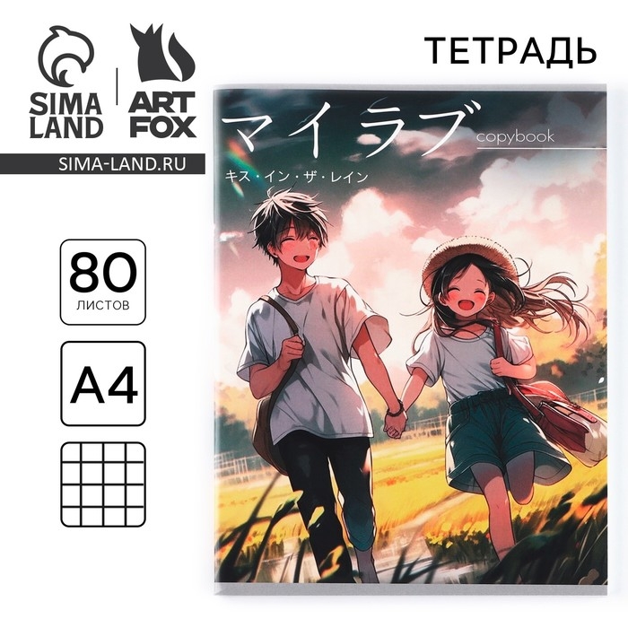 Тетрадь в клетку А4, 80 листов на скрепке «1 сентября:Аниме пара»