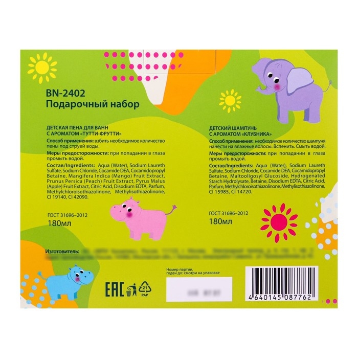 Этот набор станет отличным подарком для малышей и их родителей, предлагая заботу и удовольствие во время купания, благодаря безопасным и эффективным средствам, разработанным специально для детской кожи.