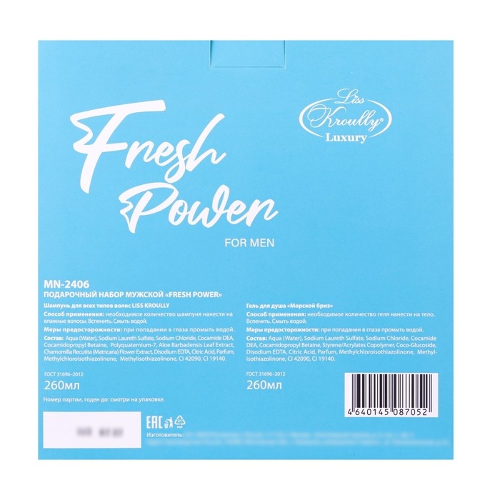 Подарочный набор косметики мужской Liss Kroully: шампунь, 260 мл + гель для душа, 260 мл