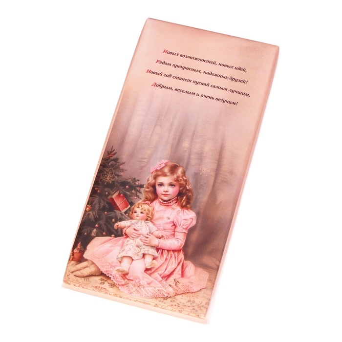 Новый год. Кондитерская плитка "С Новым годом и рождеством" ретро, девочка с куклой, 100 г