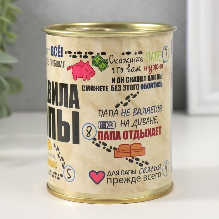 Носки в банке "Правила папы" (внутри носки мужские, цвет чёрный)