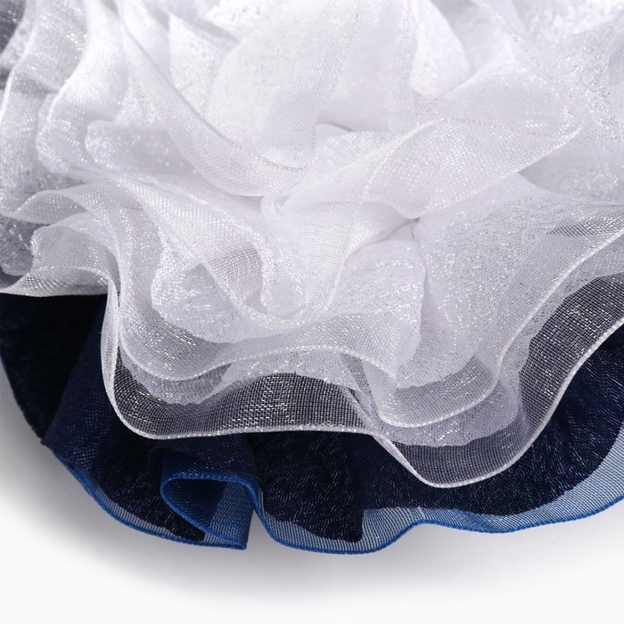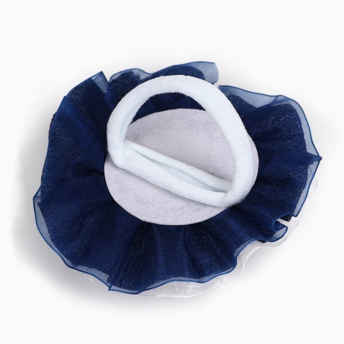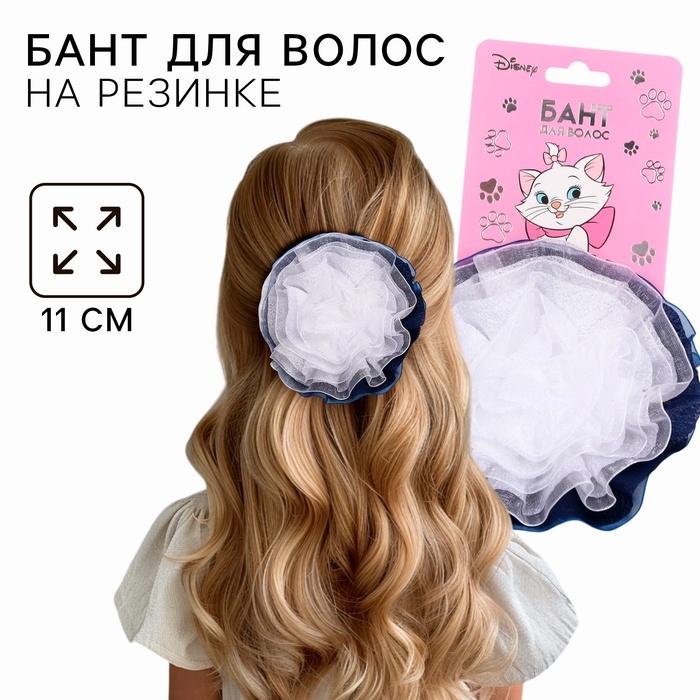 Выпускной. Бант для волос на резинке, белый с синим, 11 см, Кошечка Мари