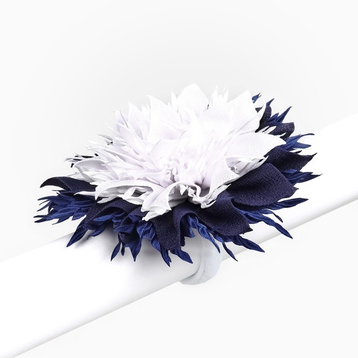 Выпускной. Бант для волос на резинке, белый с синим, 11 см, Кошечка Мари