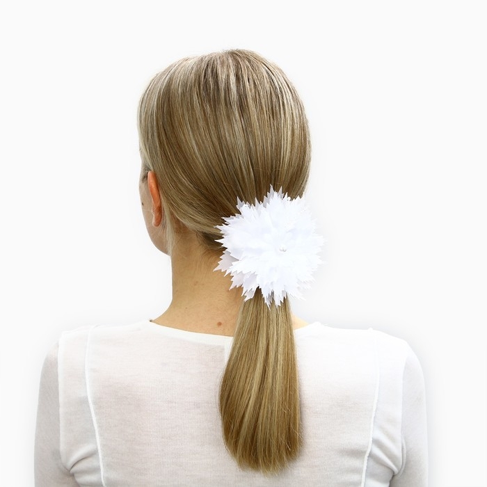 Выпускной. Бант для волос на резинке, белый, 11 см, Кошечка Мари