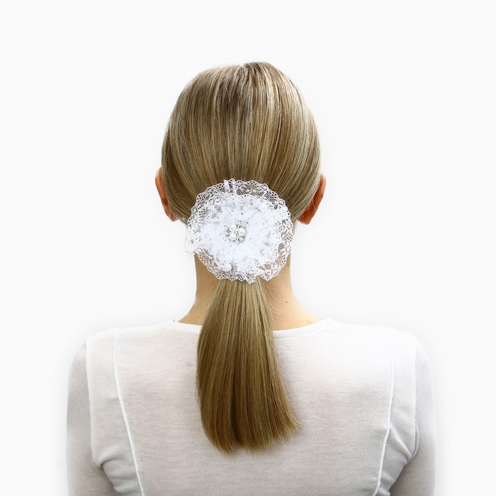 Выпускной.Бант для волос на резинке, белый, 10.5 см, Кошечка Мари