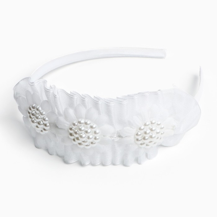 Ободок для волос "Цветы", белый, 10 см, Принцессы
