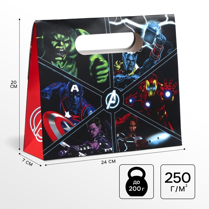 Пакет-коробка "Герои", Мстители, 24х20х7