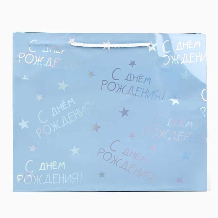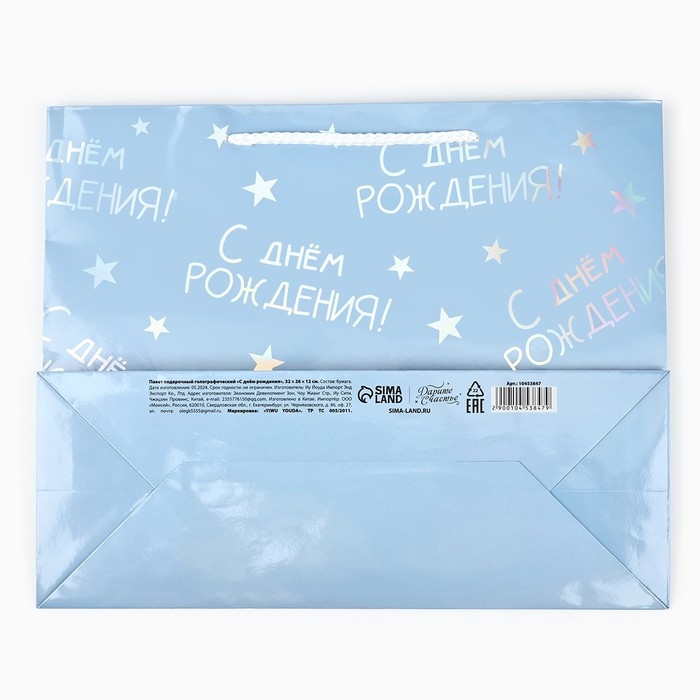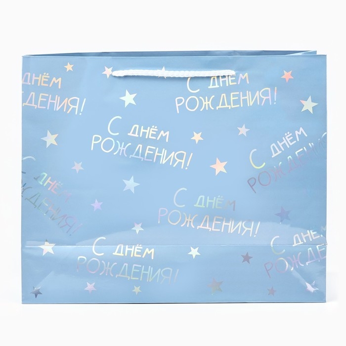 Пакет подарочный голографический «С Днём рождения», 32 х 26 х 12 см