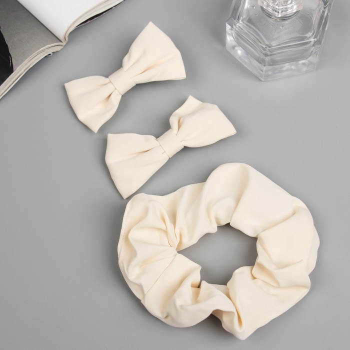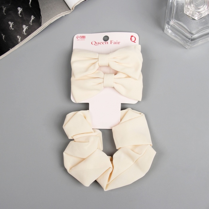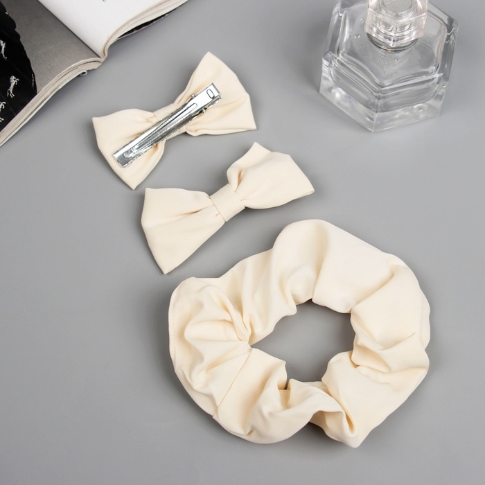 Набор для волос "Фелиция" (резинка 7 см, 2 зажима 6,5 см) стиль, молочный