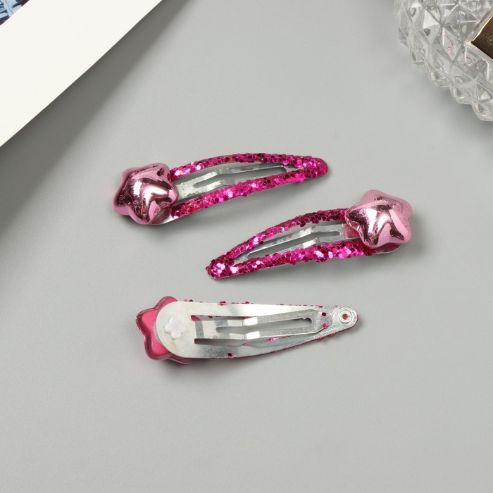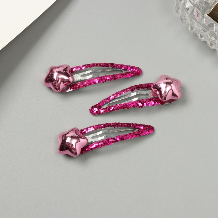 Невидимка для волос "Агата" (набор 3 шт) звезда, 5 см, розовый