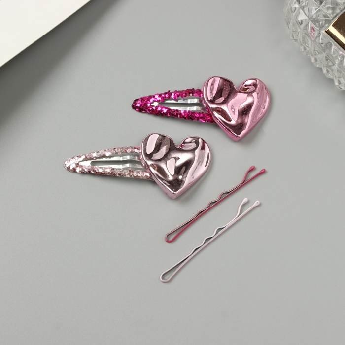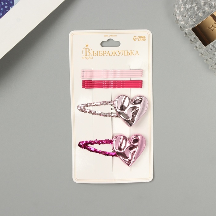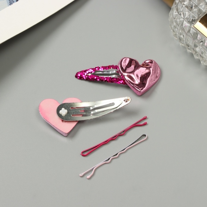 Невидимка для волос "Беатрис" (набор 10 шт) сердце, 5 и 5,5 см, розовый