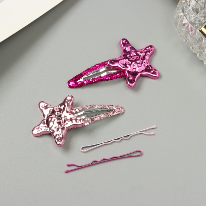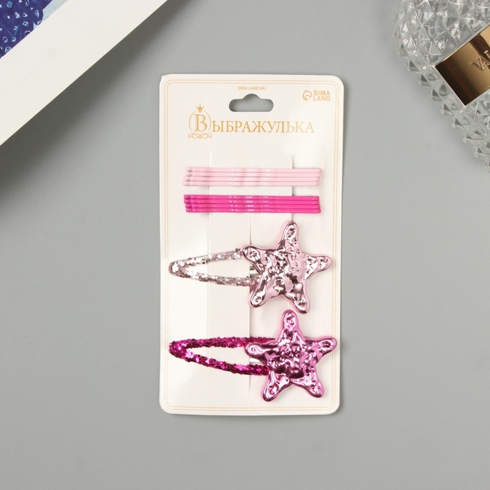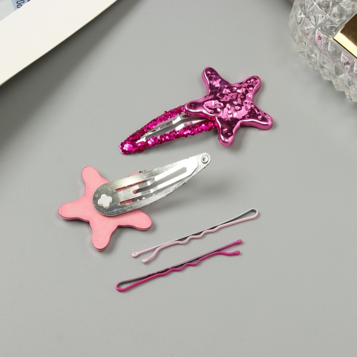 Невидимка для волос "Беатрис" (набор 10 шт) звезда, 5 и 5,5 см, розовый