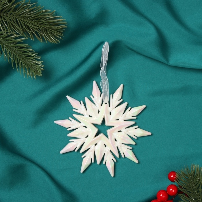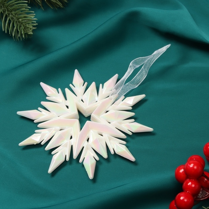 Украшение ёлочное "Снежинка рельефная" 11х11 см, белый перелив