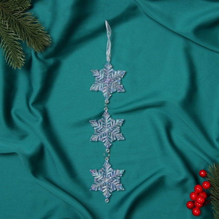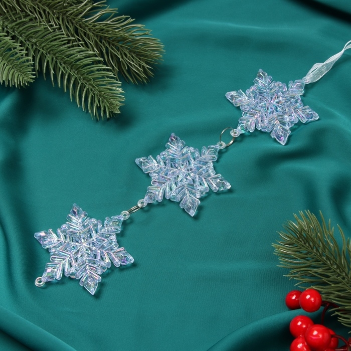 Украшение ёлочное "Снежинка подвесная" 23х5,5 см, голубой перелив
